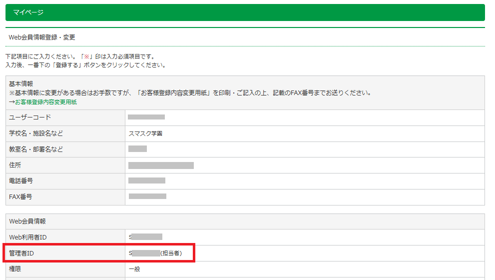 > 利用者情報 よりご確認ください。